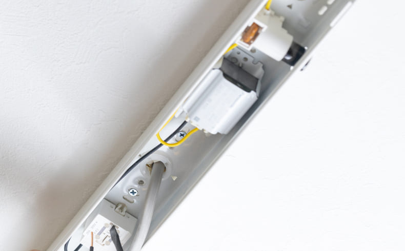 照明器具を取り付ける際には、天井に引掛シーリングを取り付ける必要があります。電気工事が誤って行われると、感電や火災の危険性があるため電気工事士の資格を持っている人しか作業できません。